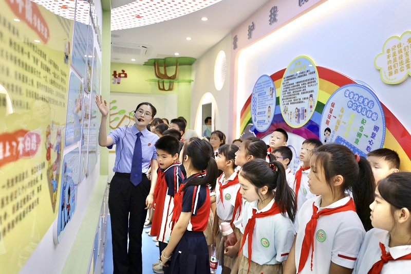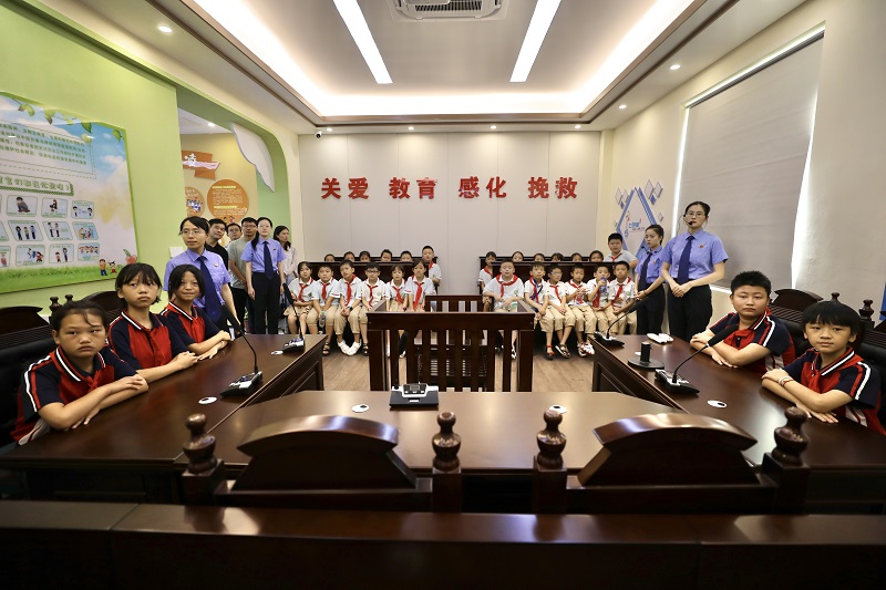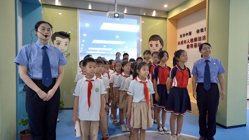 初到教育基地的孩子们看哪儿都觉得很新鲜,“检察院是干什么的?”“检察官能帮助我们什么?”小朋友们一路走着,一路兴奋好奇地问着,七色堇姐姐耐心地一一解答,并在参观过程中通过案例讲解、情景模拟、互动体验等多种形式,向同学们普及法律知识,让孩子们对“法”的含义、起源以及未成年人检察工作有了初步的了解。